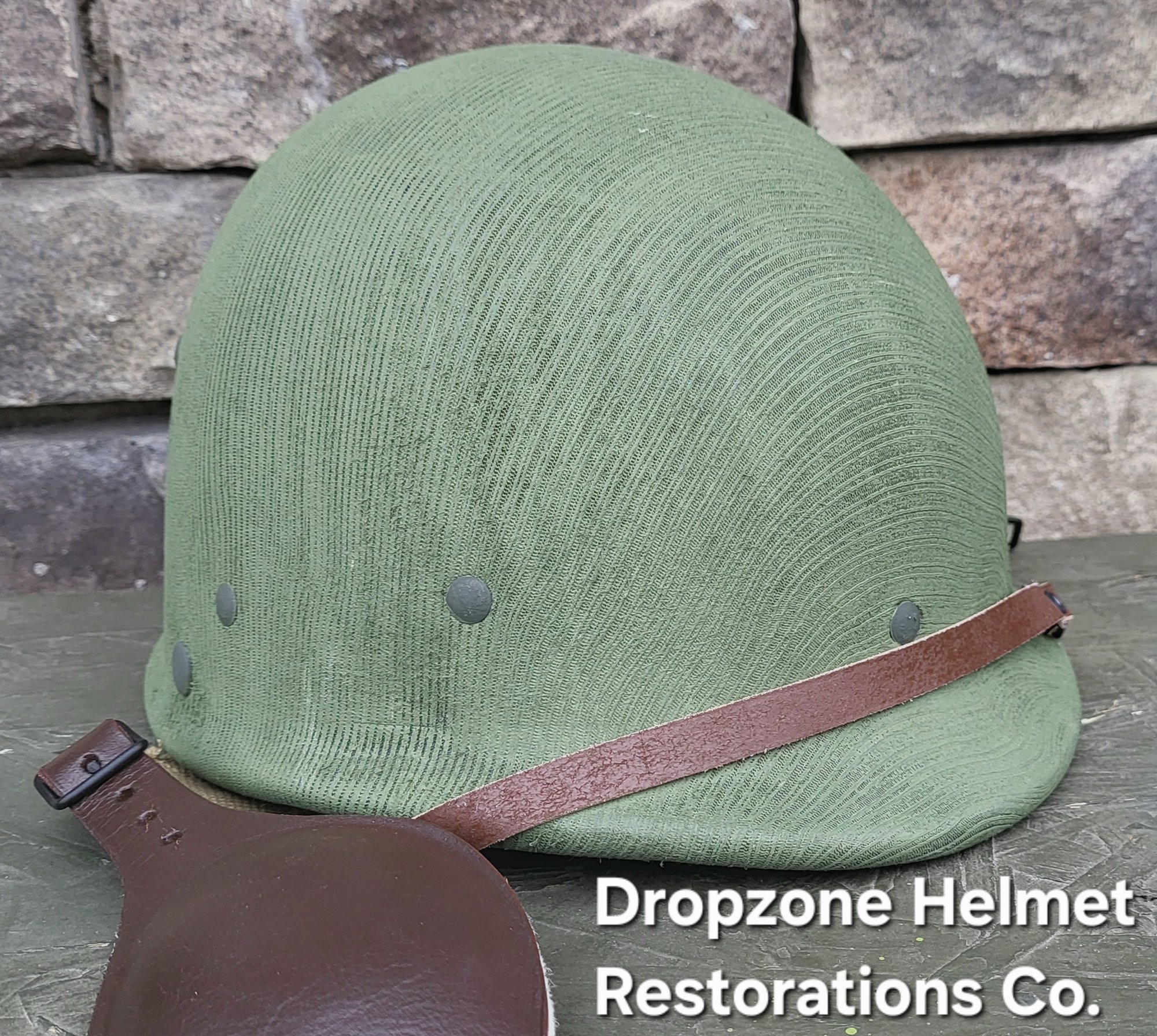 The liner has some moderate weathering on the outer cover and a discolored rim. While the interior & liner strap are all new and ready for "Your" M-1. PLEASE VIEW ALL PICTURES BEFORE PURCHASING.