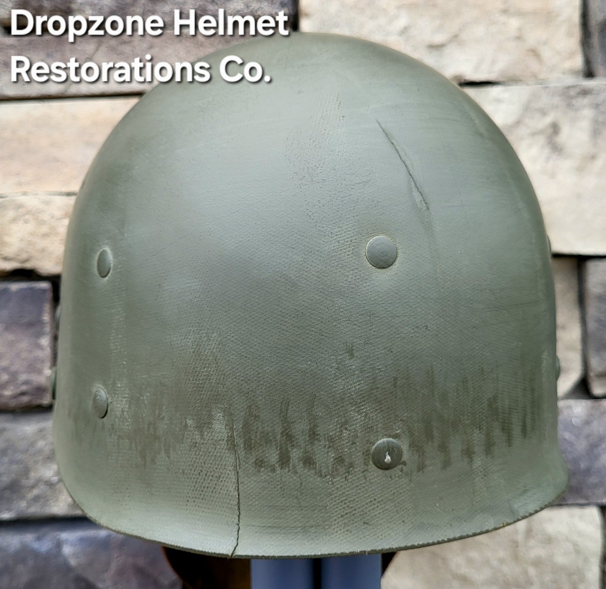 WWII M2 101st Airborne 506th Helmet D-bale Front Seam Original Westinghouse Paratrooper liner.